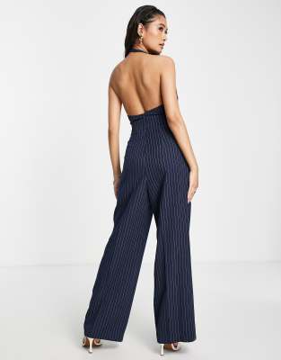 Product Name: Navy blue pinstripe jumpsuit shop