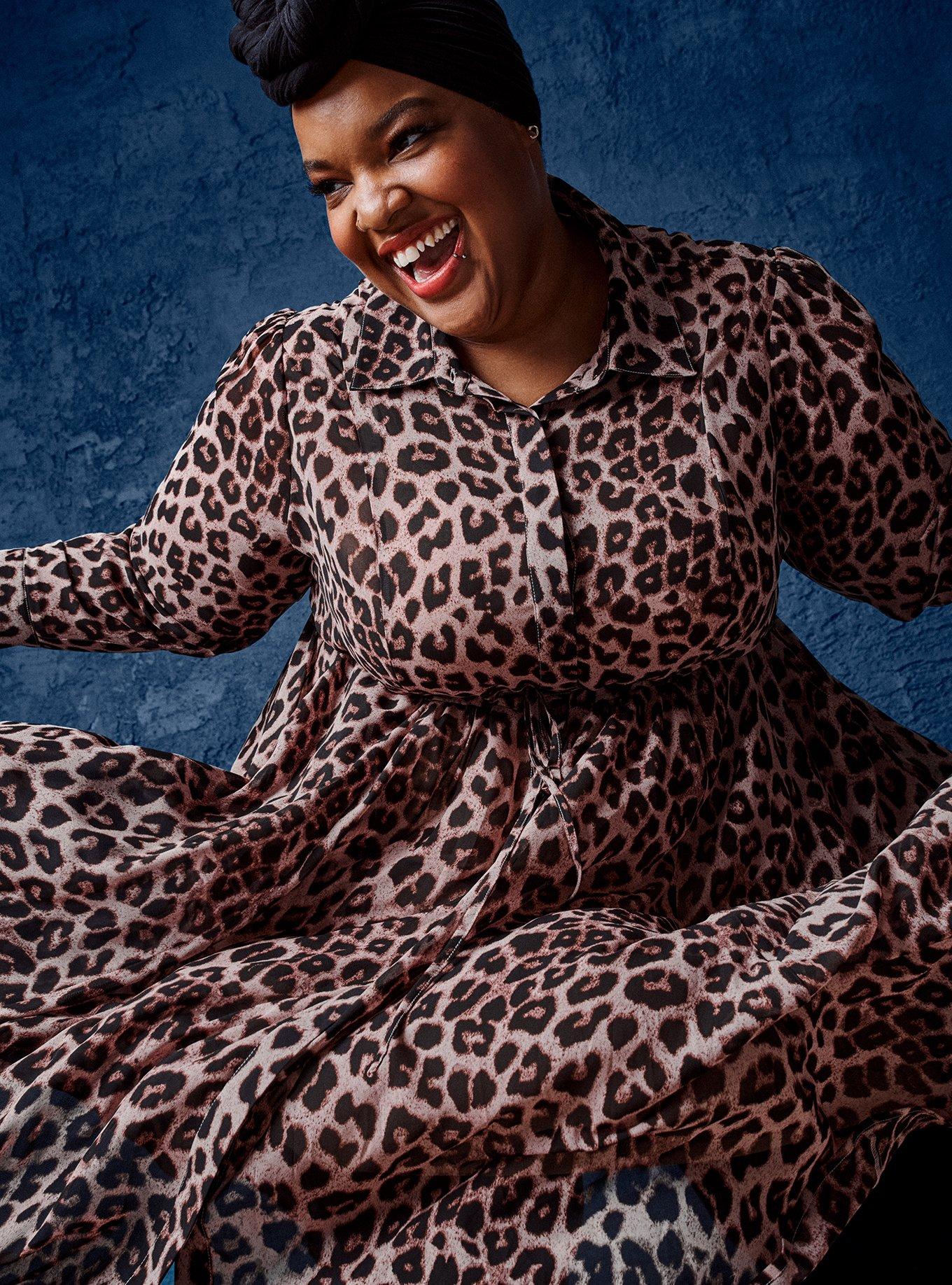 Product Name: Plus size leopard print shirt dress shop