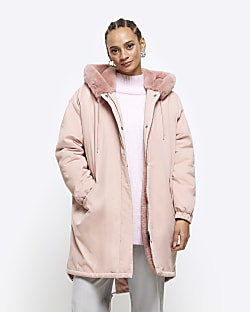 Product Name: Womens pink parka coats with fur hood shop