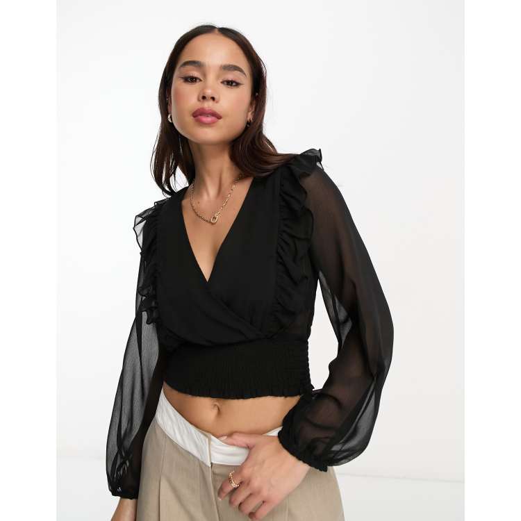 Product Name: Black sheer ruffle blouse shop