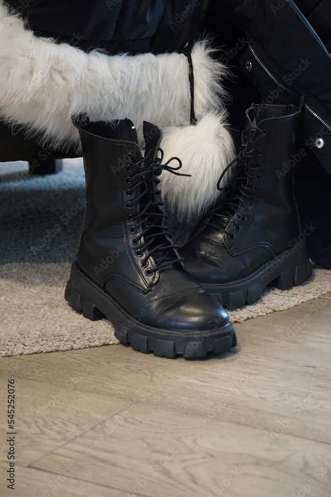 Product Name: Black shoes with fur shop