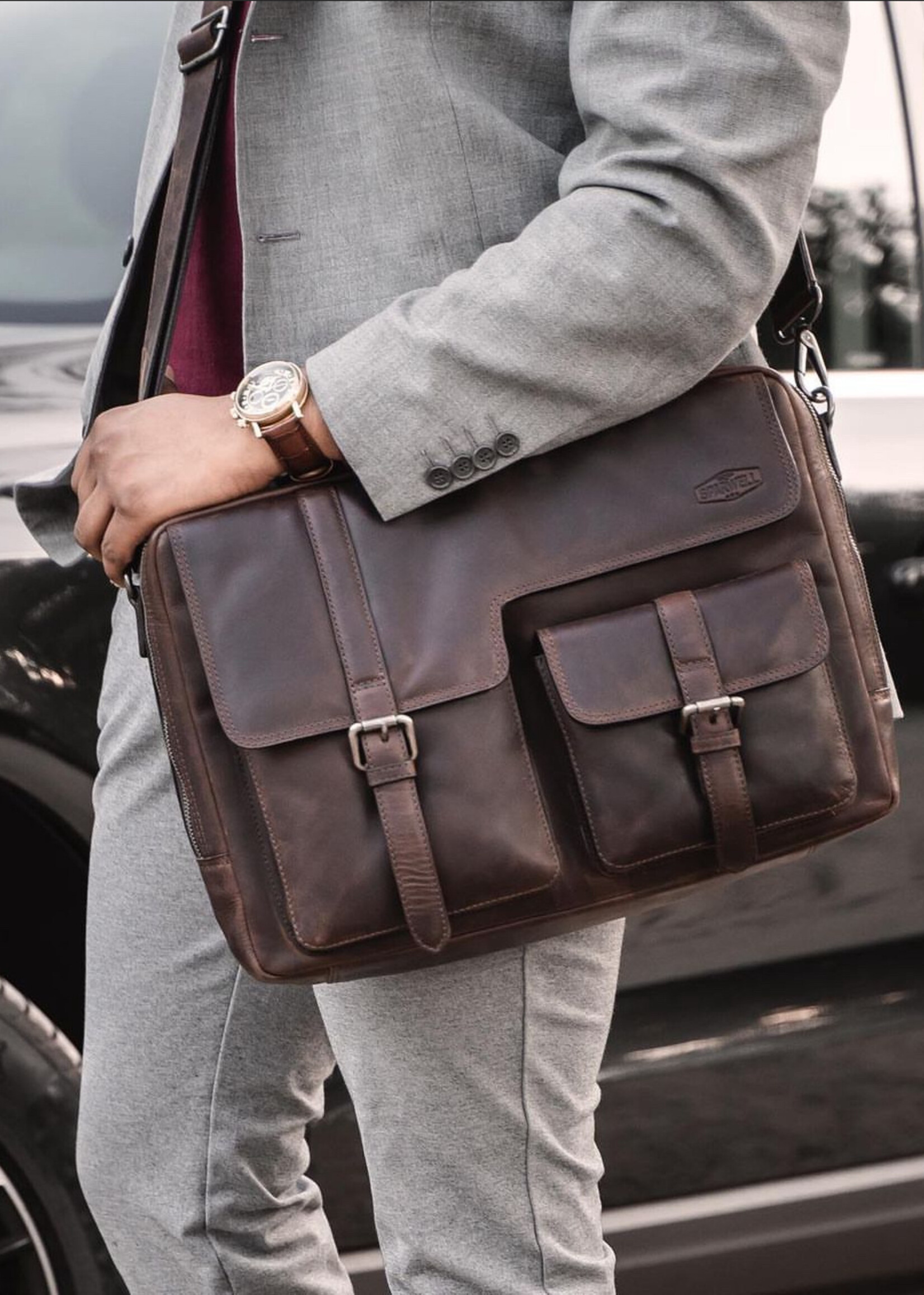 Sparwell Stoere leren aktestas en laptoptas bruin Karraro Lederwaren online
