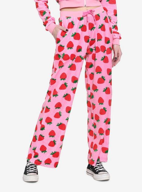 Pink Velour Strawberry Girls Lounge Pants Hot Topic