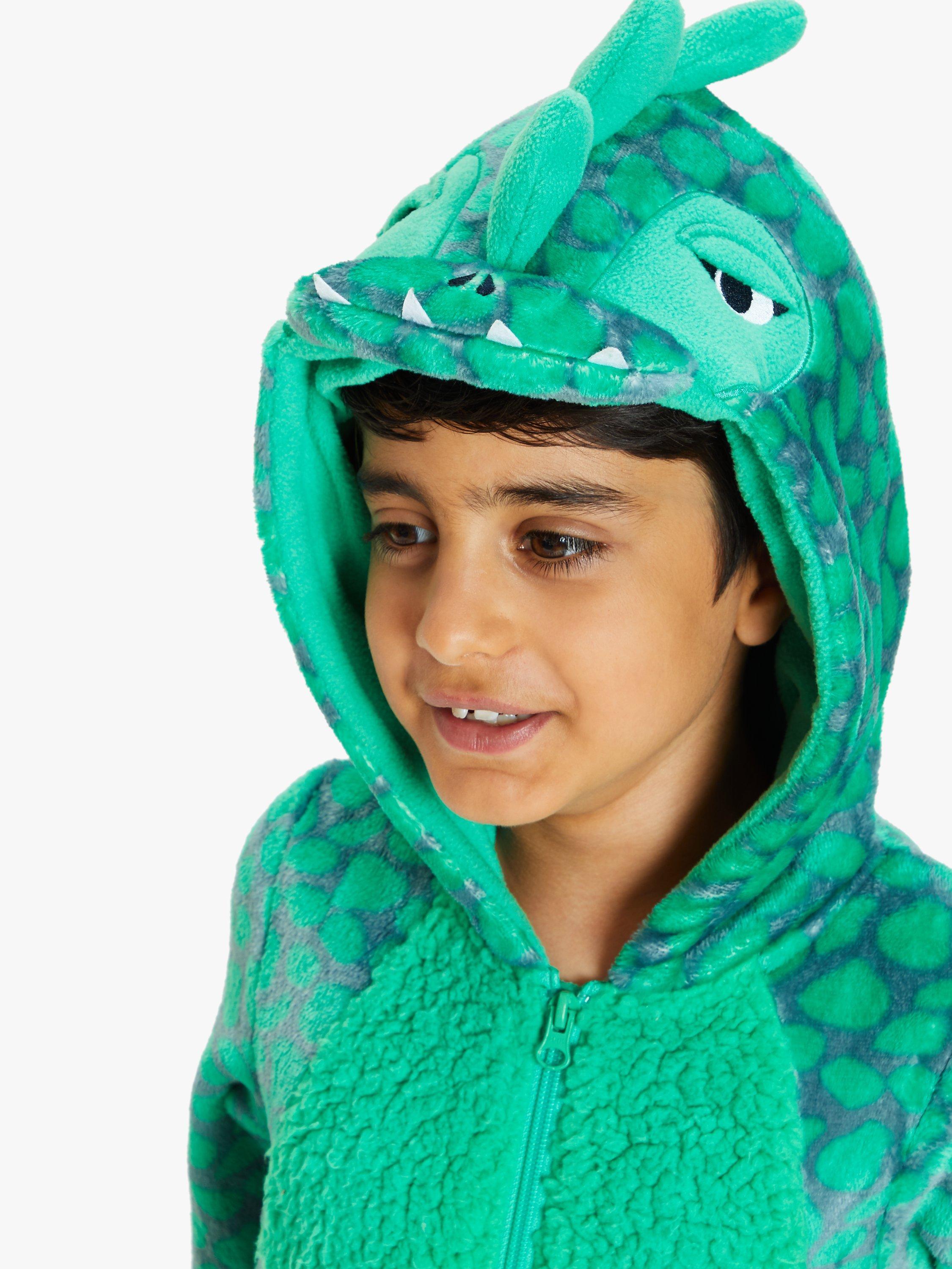 Kids Boys Dragon Animal Hooded Fleece Onesie 5 10 Years Green Big Bertha Original UK
