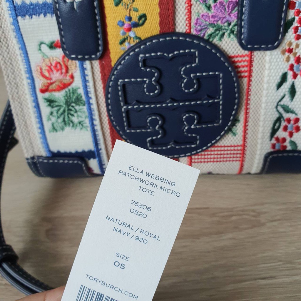 Tory burch ella webbing patchwork micro tote shop, Tory Burch Ella Webbing Patchwork Micro Tote shop