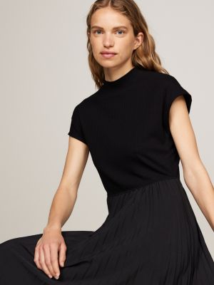 Robe midi plissee a col cheminee Noir Tommy Hilfiger