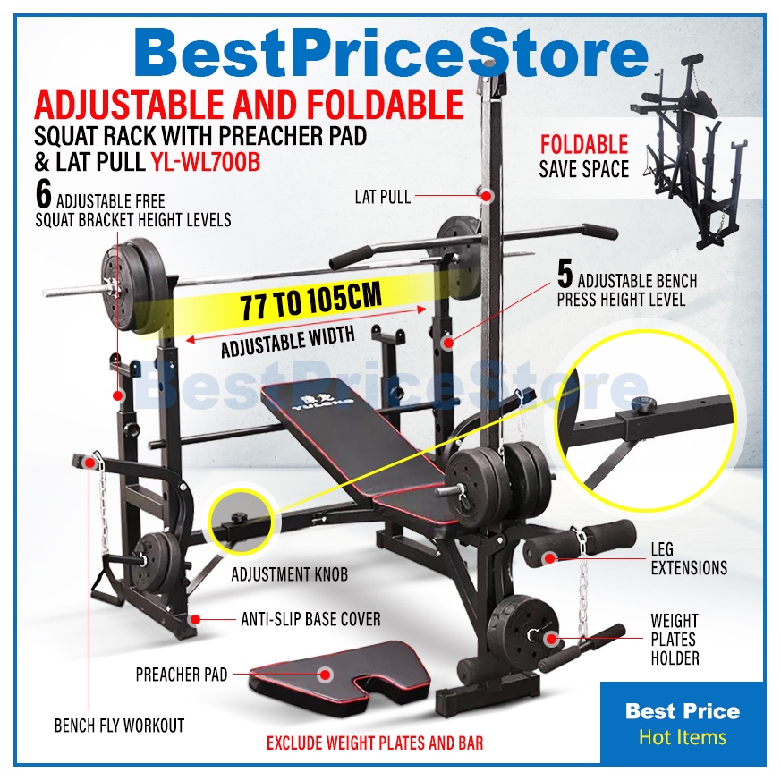 Product Name: Workout bench with independent squat rack and preacher pad shop