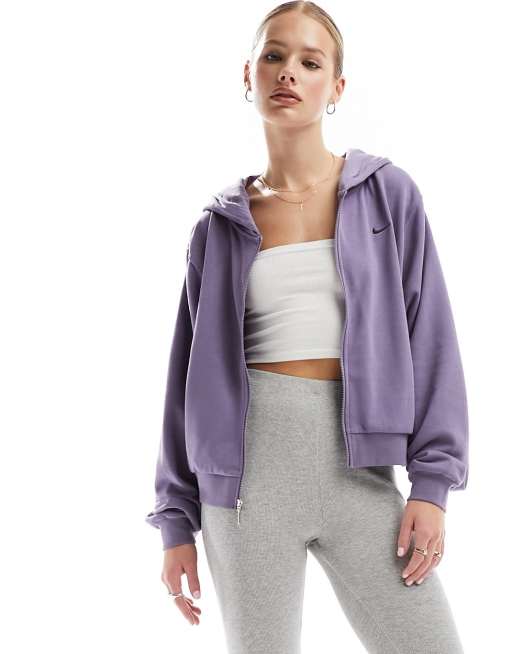 Product Name: Nike mini swoosh oversized cropped purple zip through hoodi shop