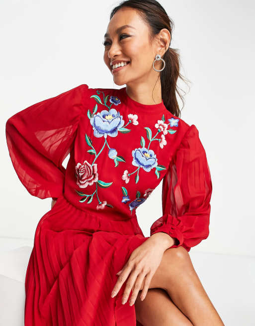 Product Name: Robe patineuse rouge manche longue shop