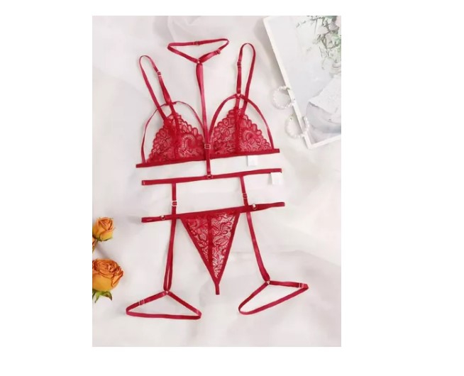 Product Name: Set de lencería con liga con encaje floral con gargantilla shop